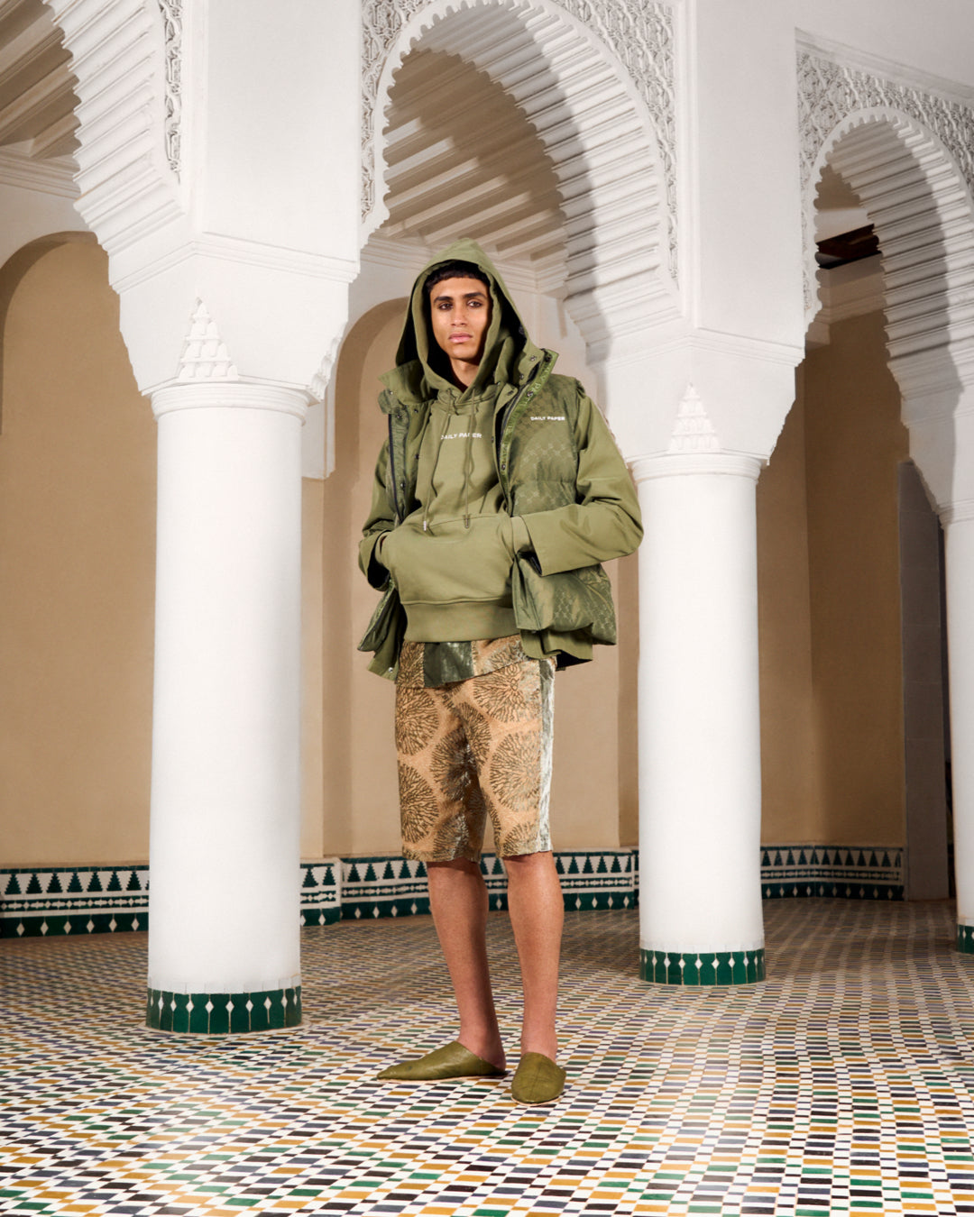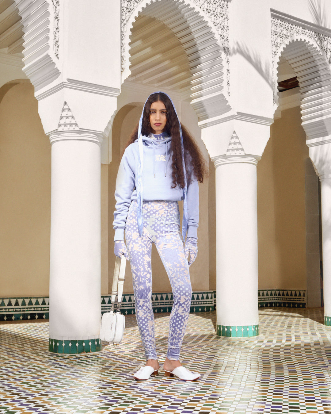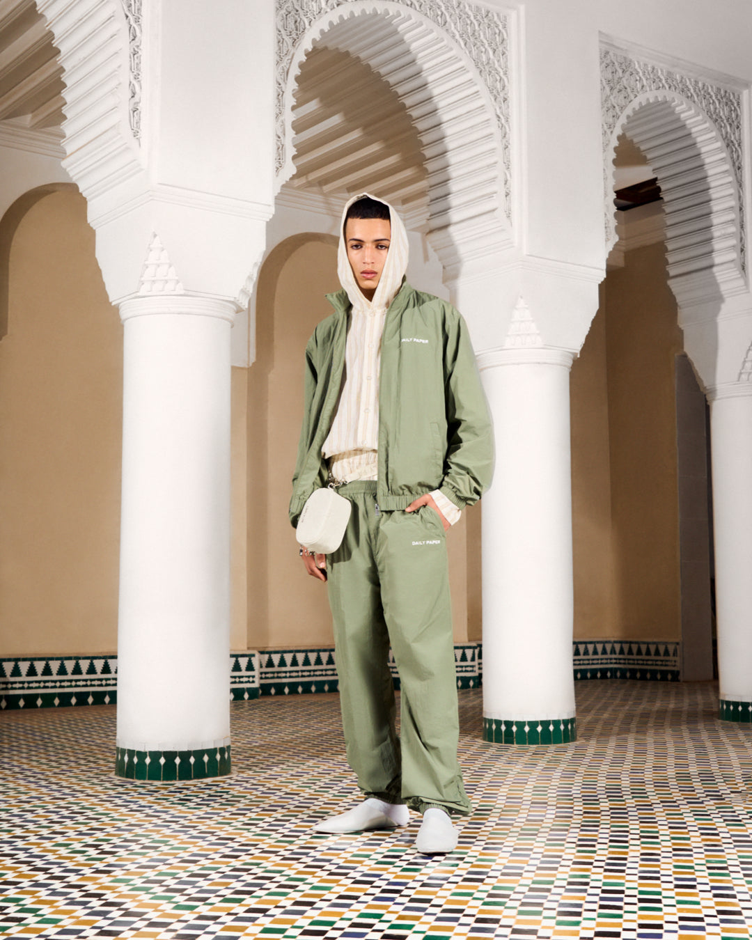 Tying the collection together, the Spring Summer 23 season sees a return to crochet silhouettes in the signature Moroccan red and green, alongside core tracksuit staples in soft earthy green and beige tones.