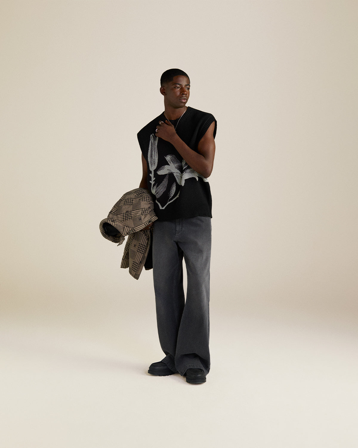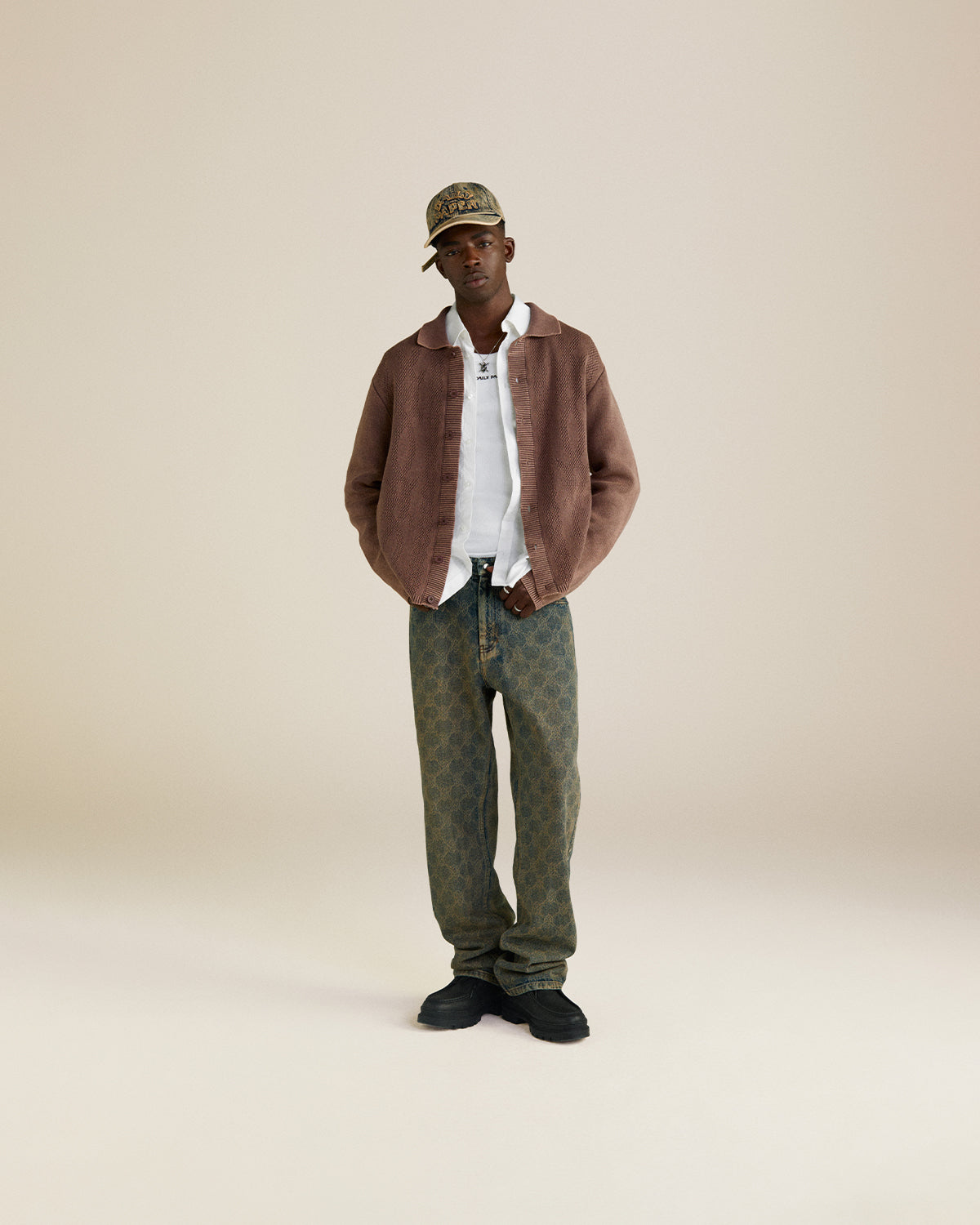 This collection celebrates the transformative power of art, turning everyday clothing and accessories into extraordinary expressions of individuality. With modern tailoring and symbolic motifs, each piece is thoughtfully designed to go beyond functionality. From intricately detailed denim to standout knits, the collection offers a wardrobe that tells a story with every stitch this season.