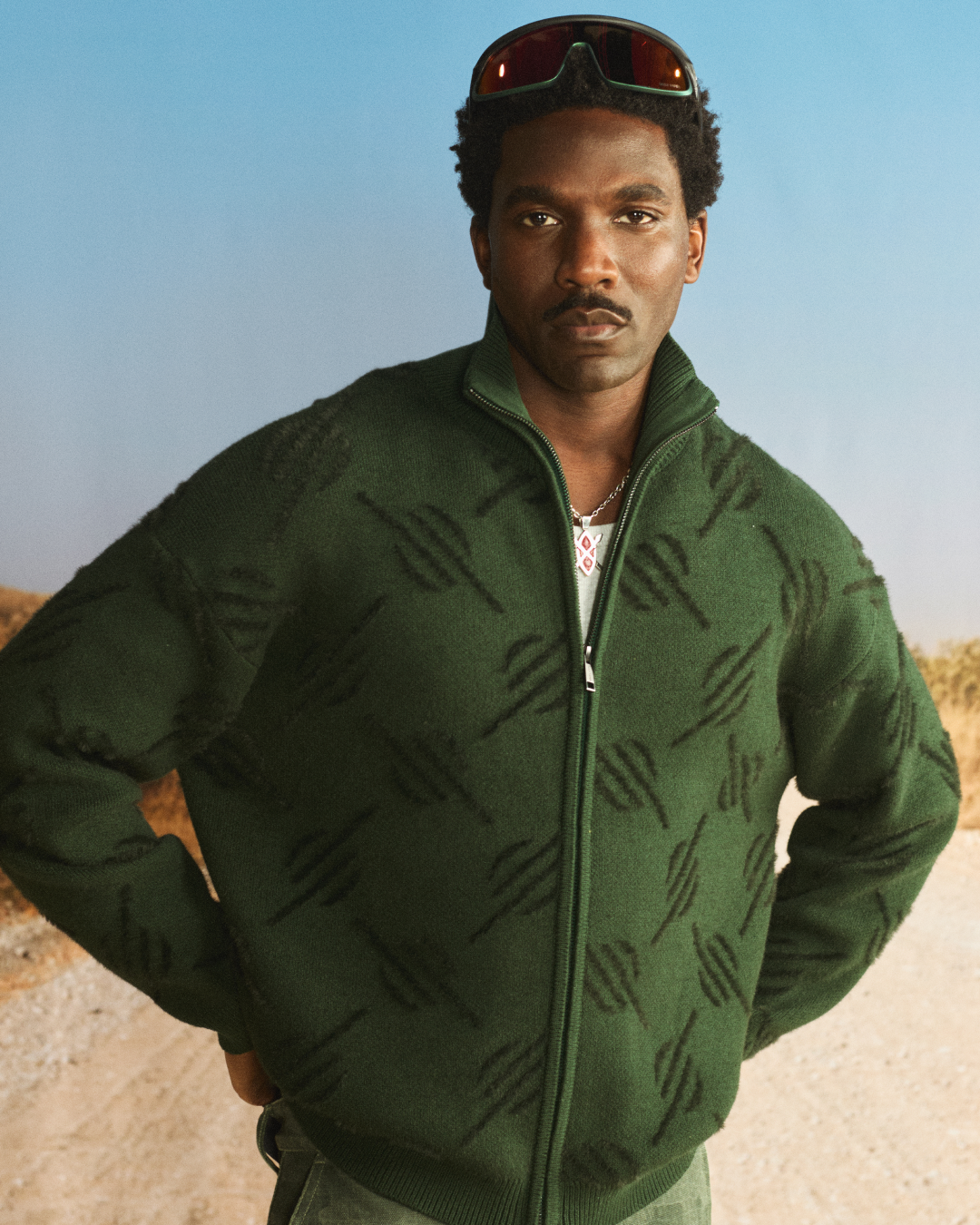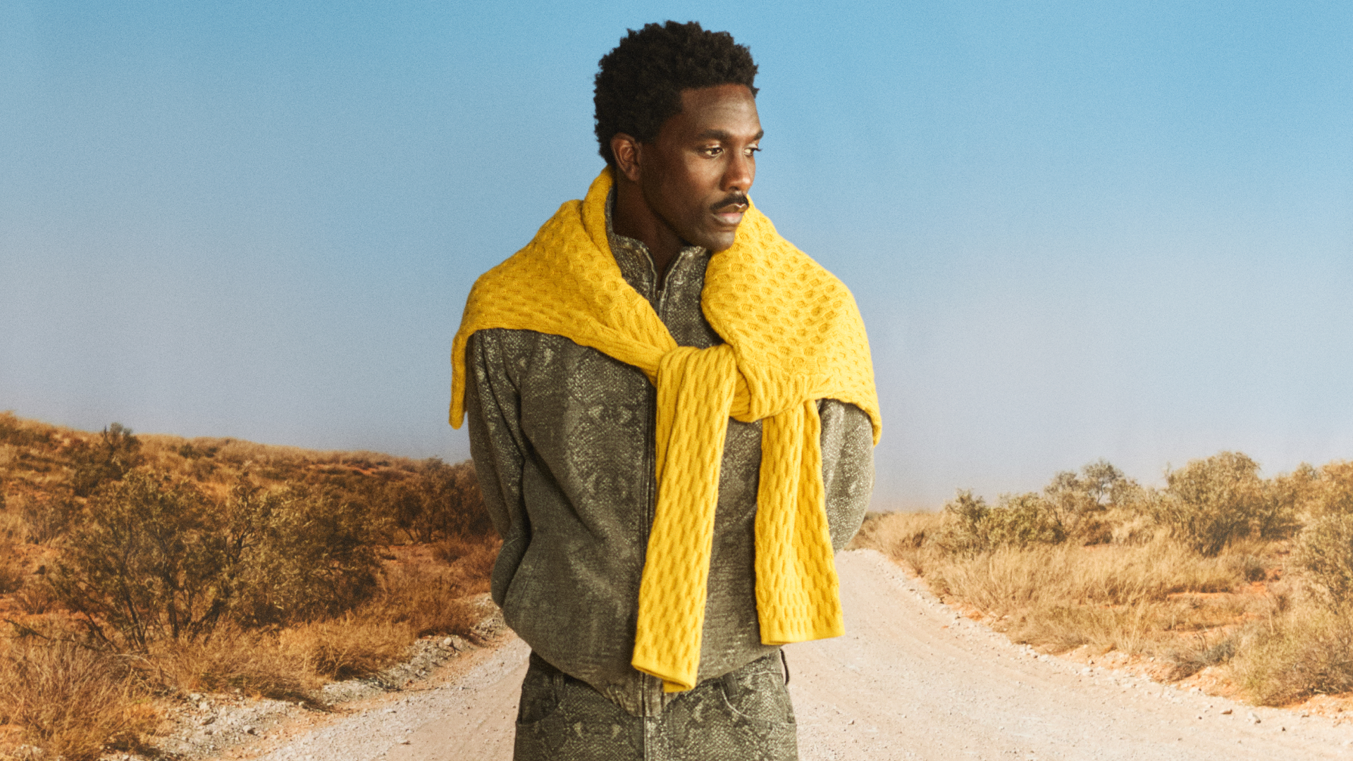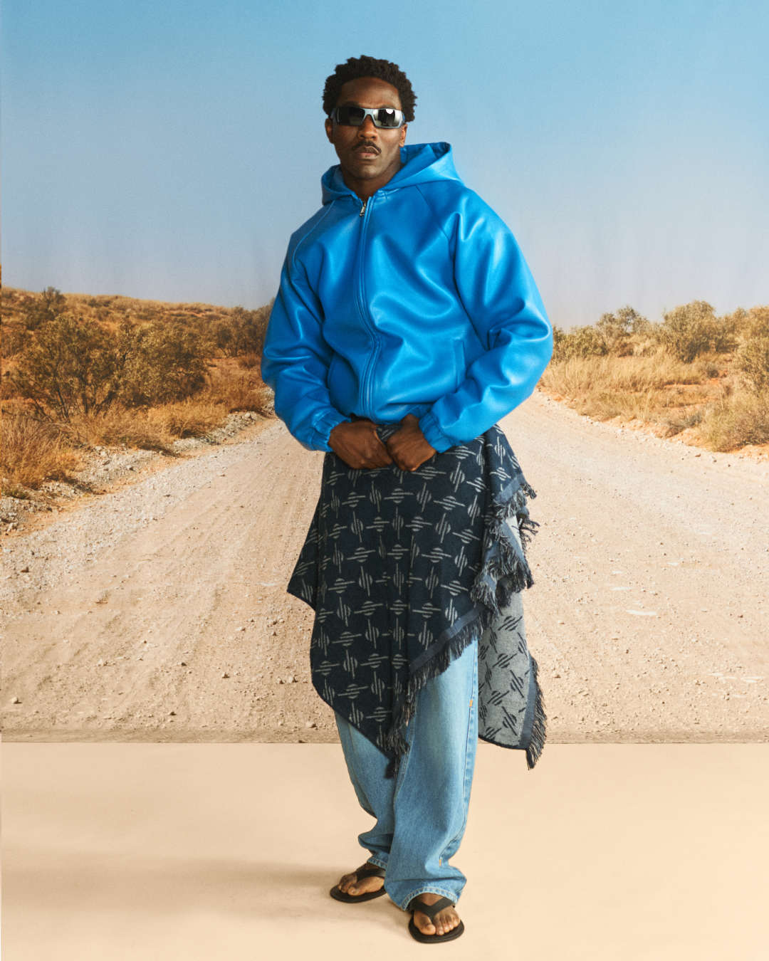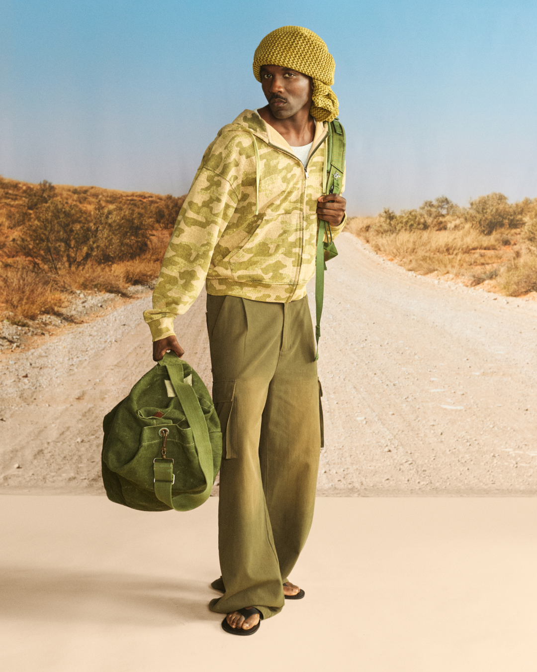 “OFF ROAD” draws inspiration from those who choose to move beyond the expected and carve their own direction, choosing their own lane. This ethos of making more from what already exists at the heart of the collection, translating into washed textures, utilitarian silhouettes, and graphic treatments inspired by dust, desert tracks, and untrodden paths.