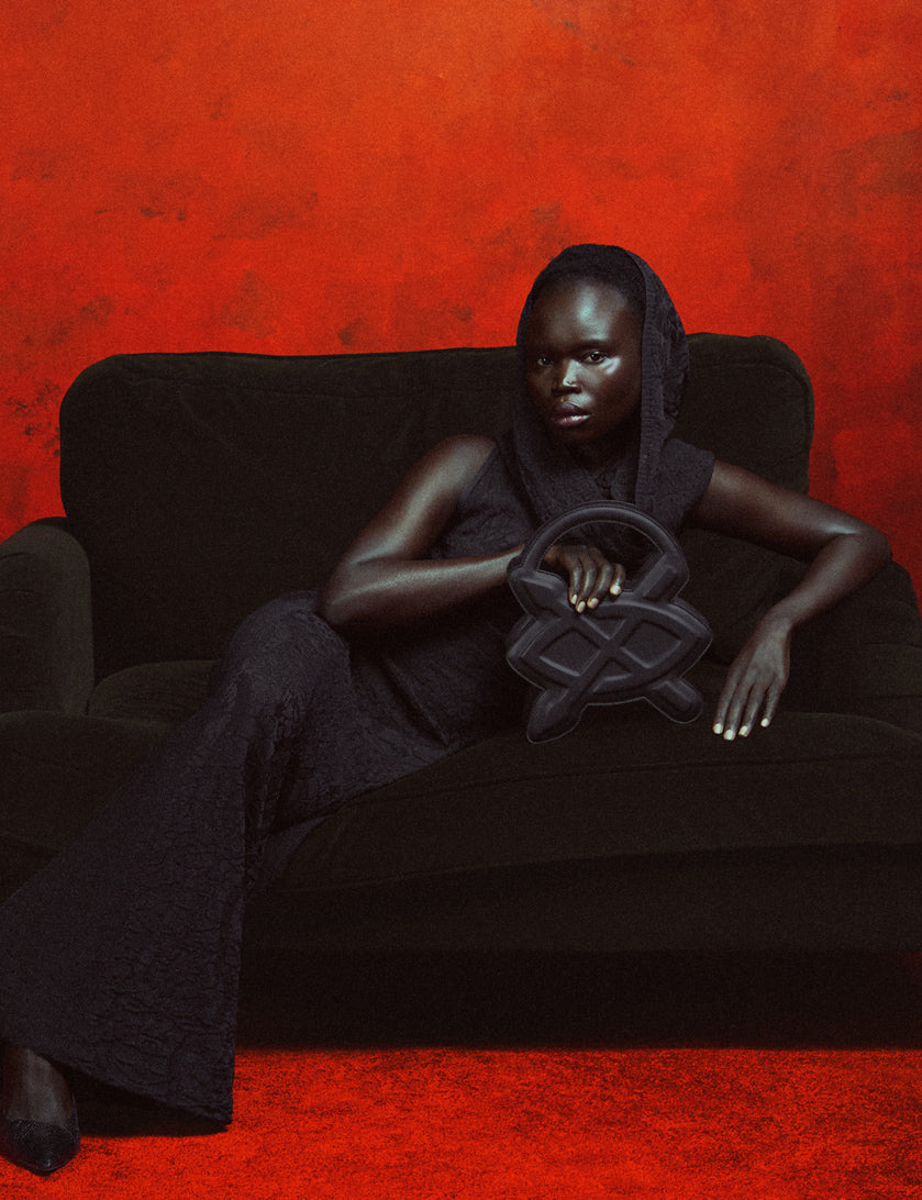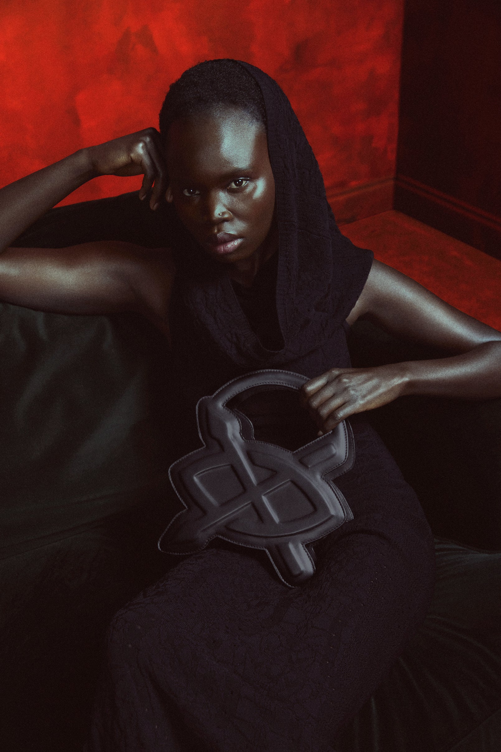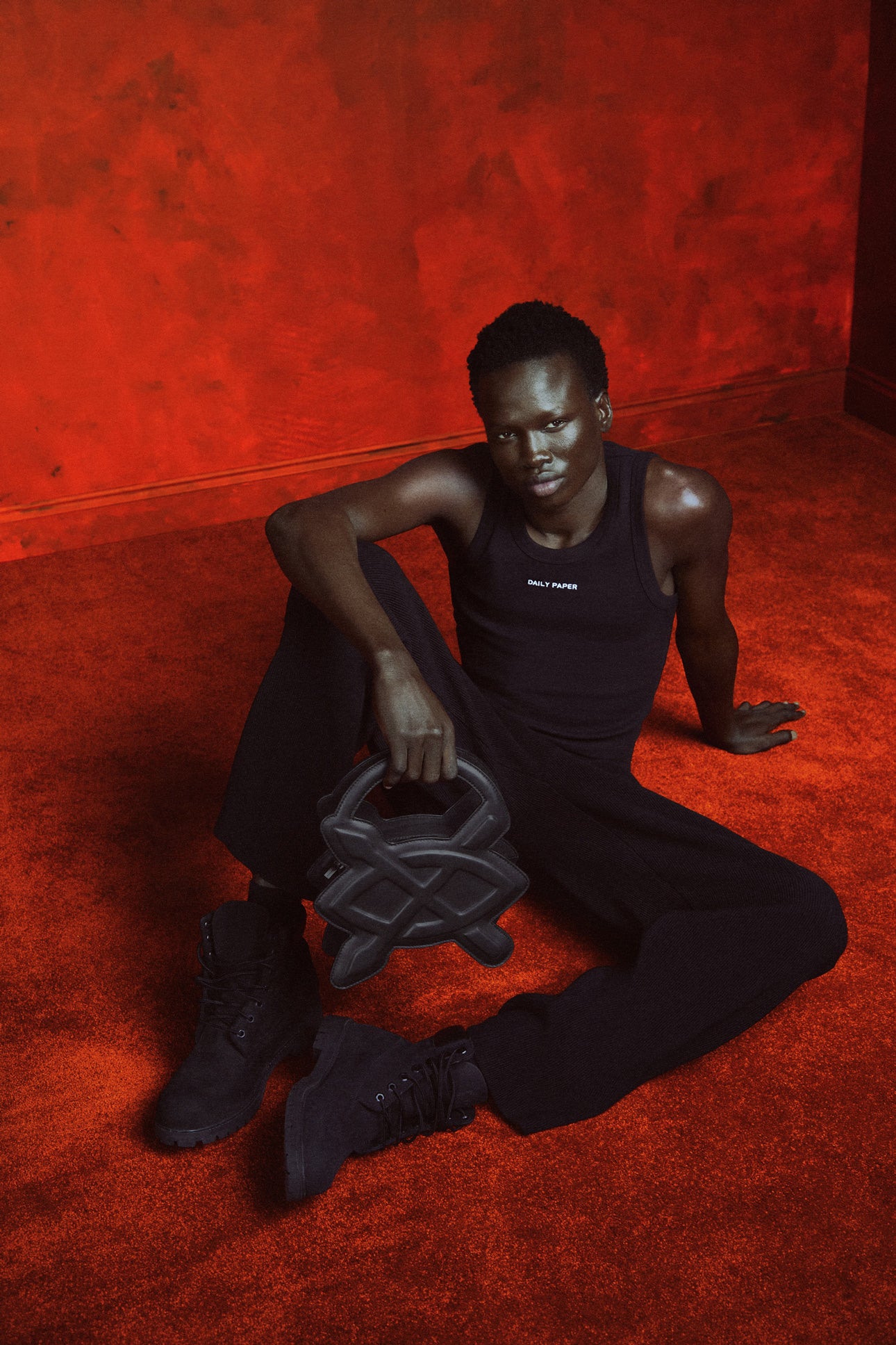 The bag's design is a physical translation of the Daily Paper emblem, which is a modern interpretation of the Maasai shield and reflects the nomadic spirit of Daily Paper.
